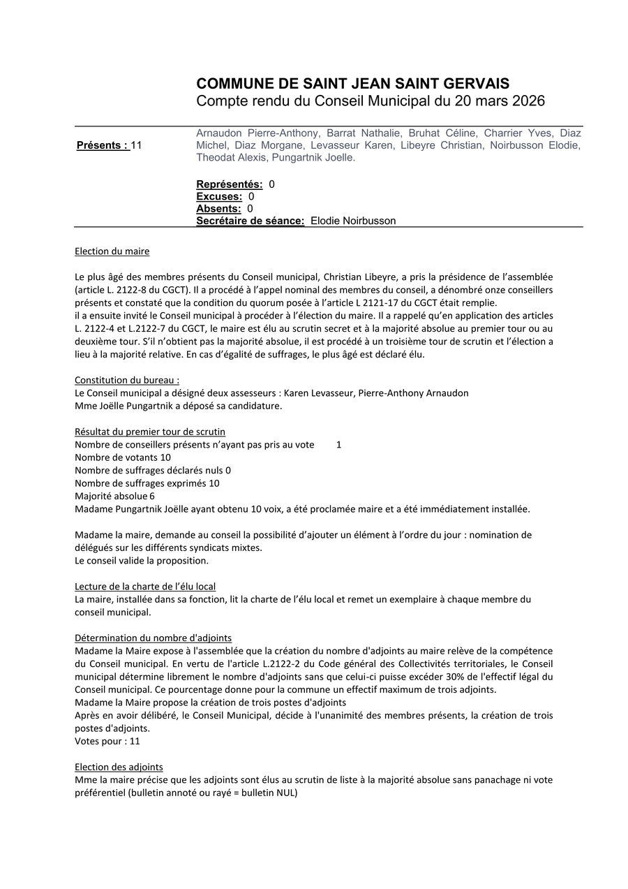 Le 1er conseil municipal de la nouvelle équipe s'est déroulé le vendredi 20 mars 2026.