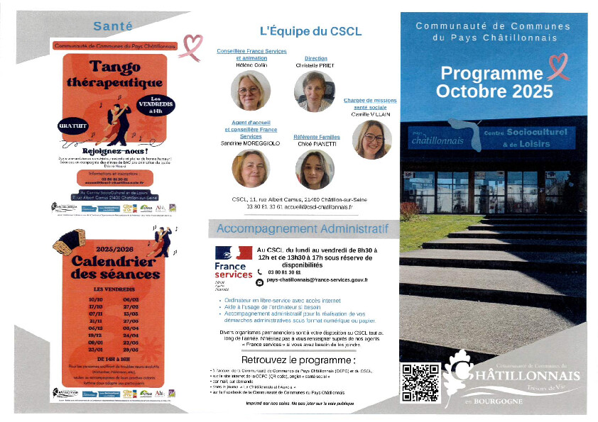Le Centre SocioCulturel et de Loisirs de la Communauté de Communes du Pays Châtillonnais vous propose son programme pour