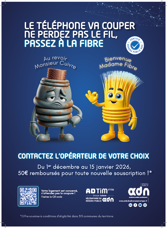 Dans le cadre du déploiement du réseau public ADN sur les départements de l’Ardèche et de la Drôme, l'exploitant du réseaux propose une offre de remboursement de 50 € pour toute première demande de raccordement à la fibre sur la commune de Rochefort-Samson, effectuée entre le 1er décembre 2025 et le 15 janvier 2026