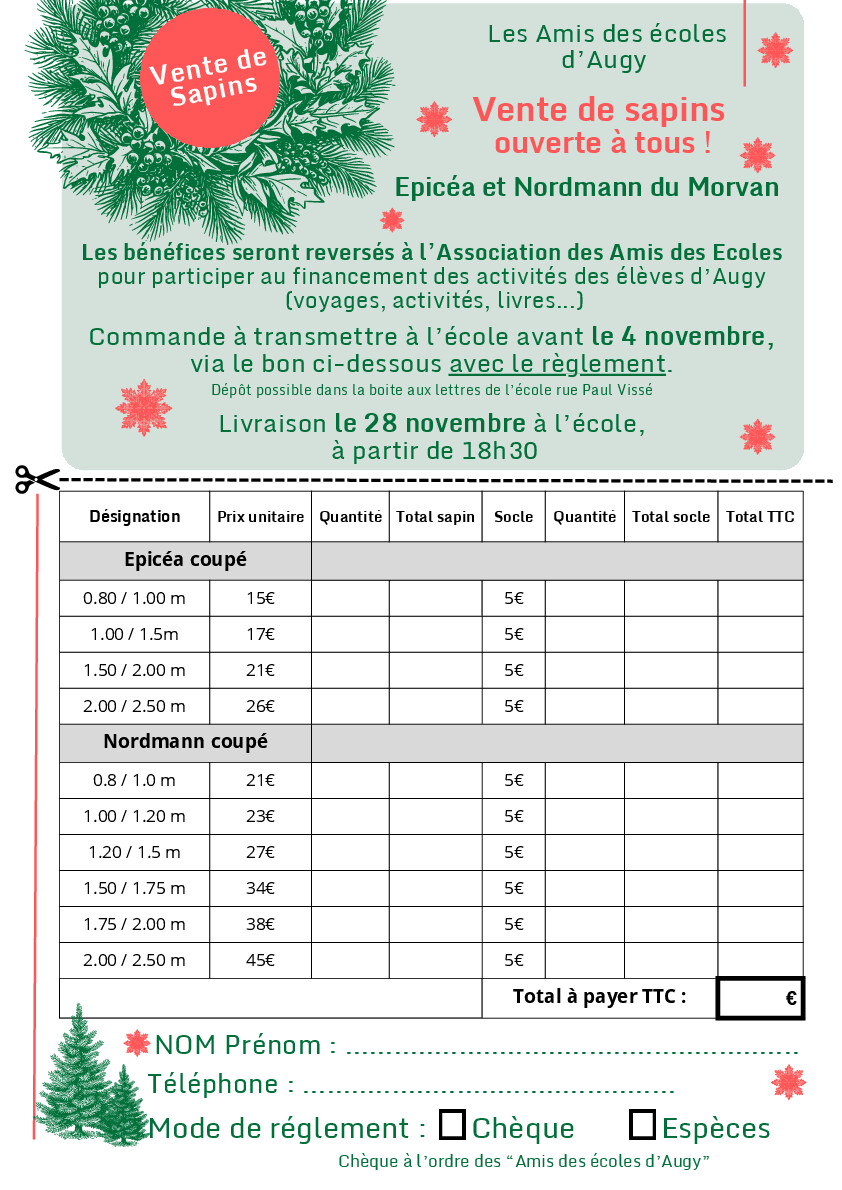 Une vente de sapins vous est proposée par Les Amis des Écoles d'Augy.