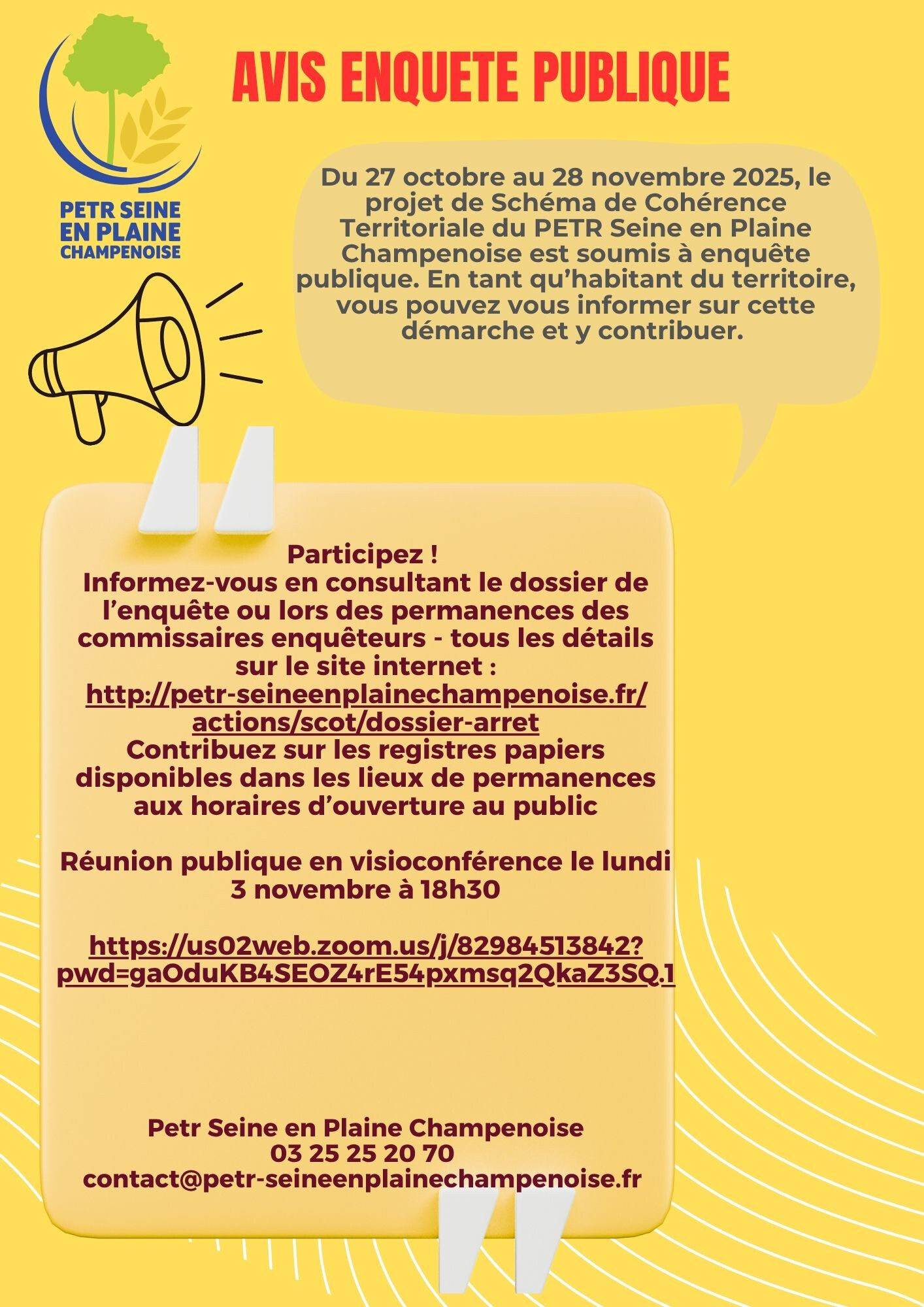 Une réunion publique en visioconférence aura lieu le 3 novembre à 18h30 par le biais du lien suivant :