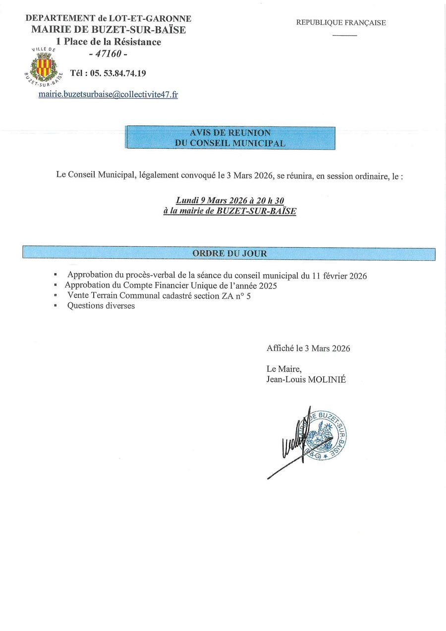 Le procès-verbal du conseil municipal du 11 février 2026 est consultable sur le site internet de la mairie.