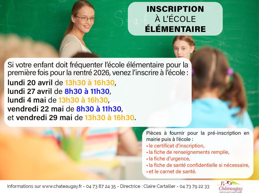 Les inscriptions à l’école élémentaire, auront lieu les :