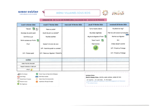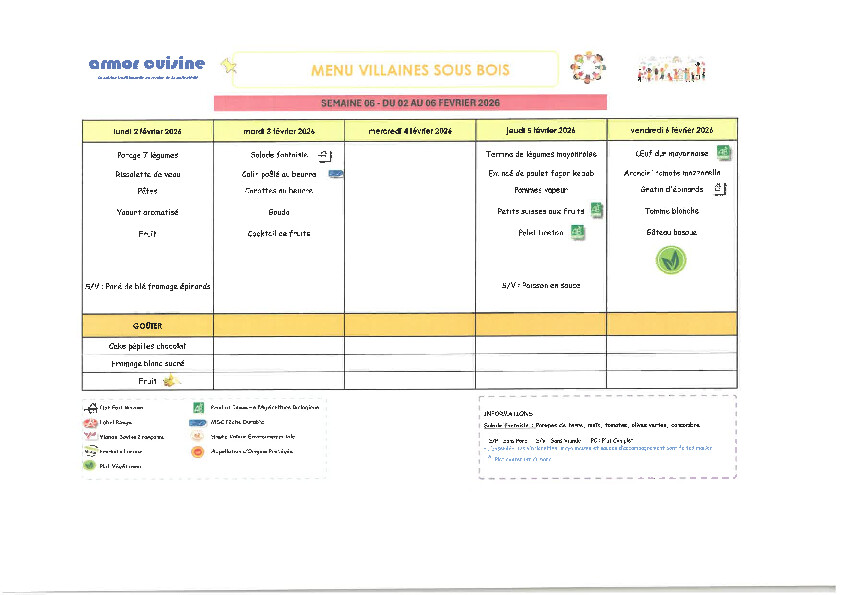 Menu cantine - Villaines-sous-Bois - 95570