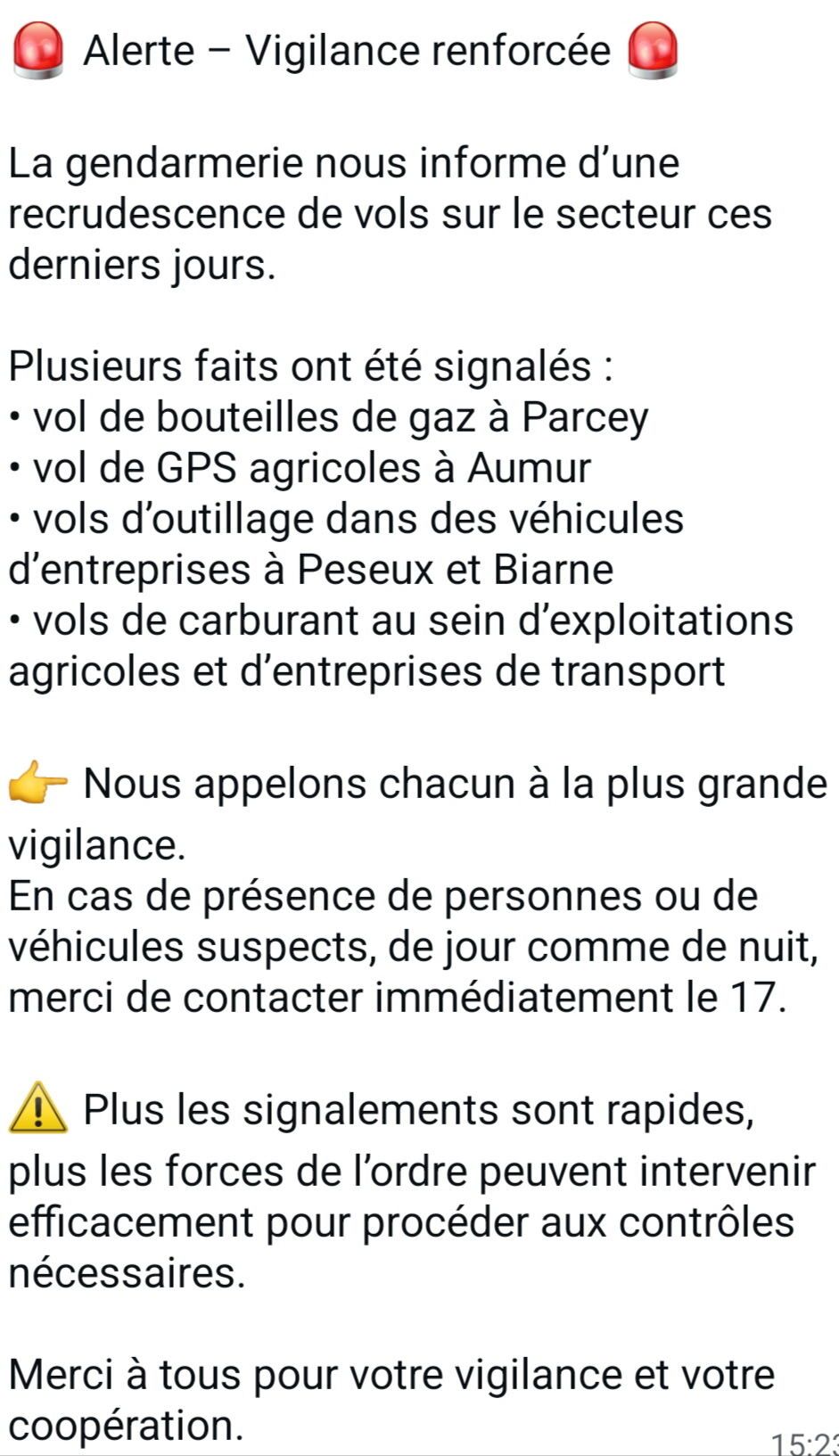 Alerte publiée le 23/03/2026
