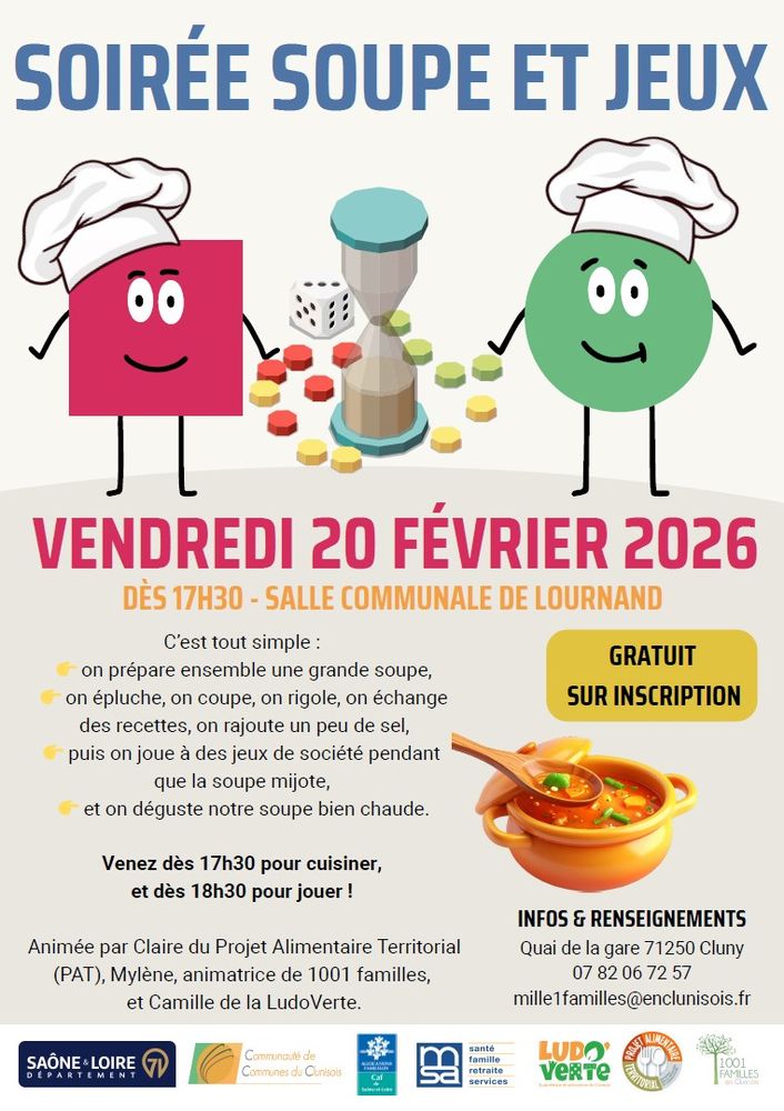 1001 Familles, le Projet Alimentaire Territorial & la LudoVerte vous invitent à une première soirée Soupe&Jeux.