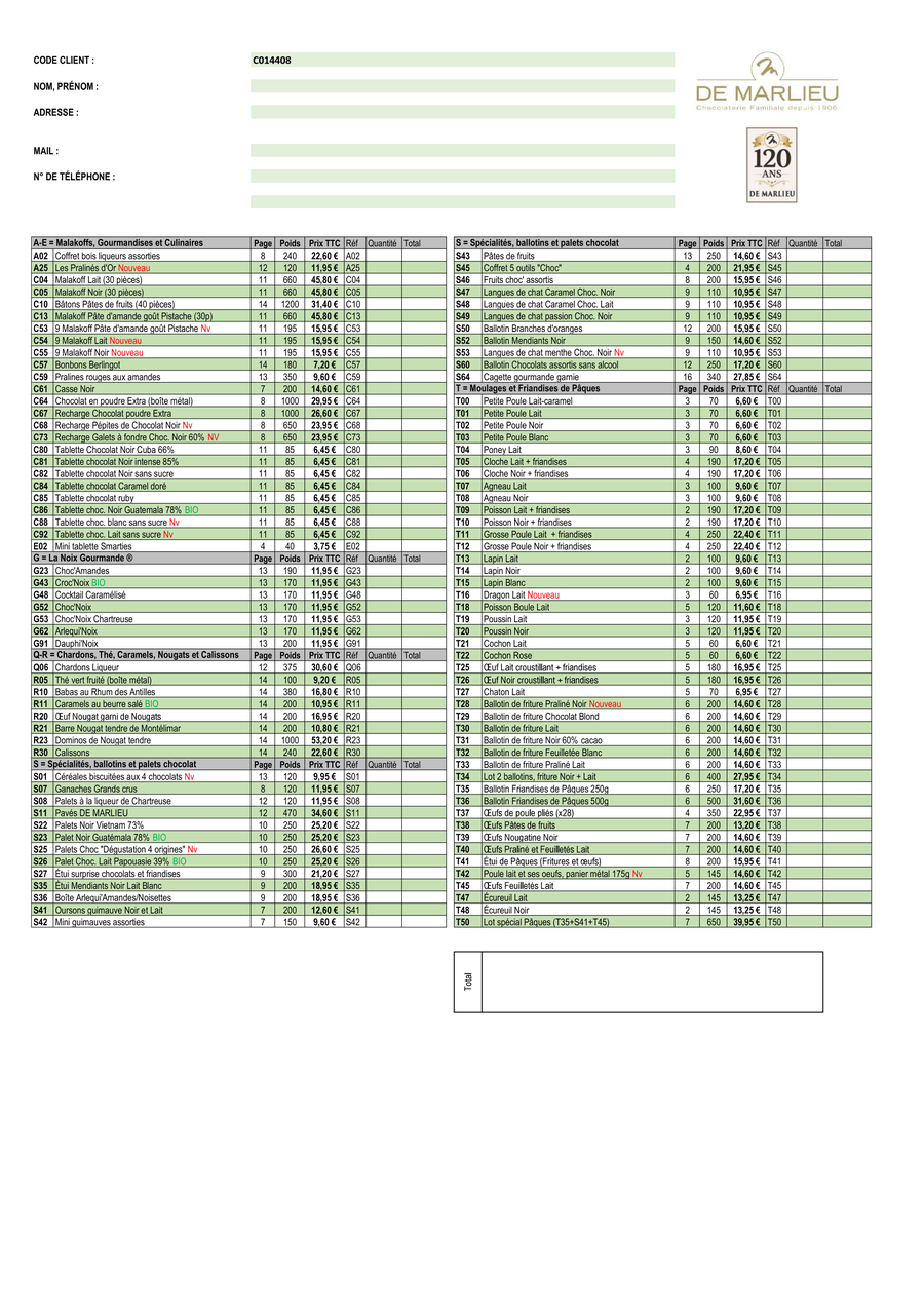 Commande à passer avant le lundi 16 mars