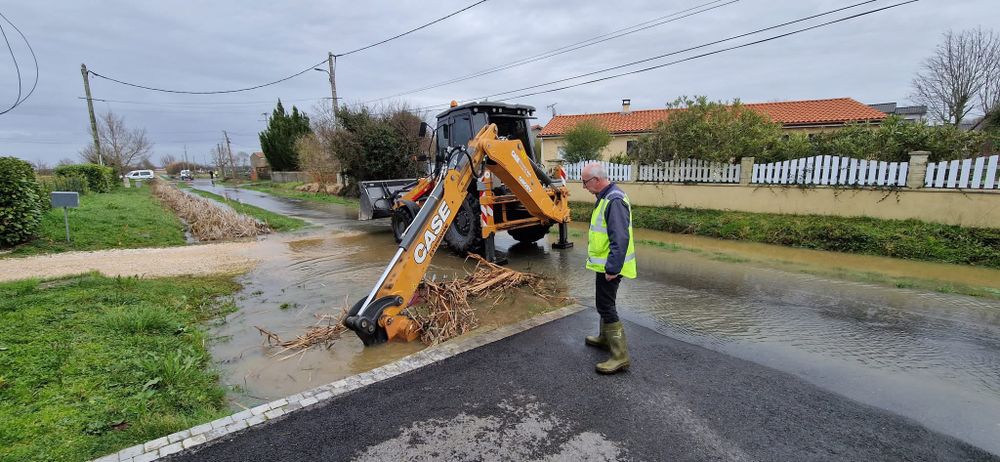 Les services de la Communauté de Communes et les agents de la GEMAPI sont sur place pour coordonner les travaux et réorienter les écoulements des ruissellements et débordements des ruisseaux et cours d’eau qui saturent les fossés.