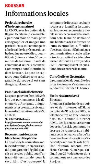 - Boussan - SEBCS / SPL - Syndicat des Eaux Barousse Comminges Save - 31420