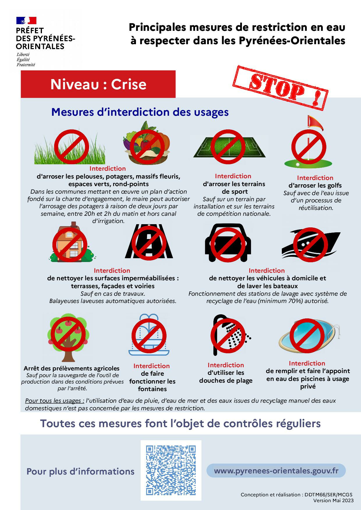 L’arrêté préfectoral DDTM/SER/2023-129 du 9 mai 2023 portant sur la mise en place de mesures de restrictions provisoires des usages de l’eau liées à l’état de la ressource superficielle et des nappes souterraines, et de dérogation au débit réservé, a été mis en place le mercredi 10 mai et jusqu’à mardi 13 juin.