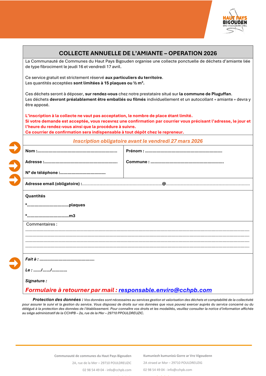 La Communauté de Communes du Haut Pays Bigouden met en place un nouveau dispositif de traitement des déchets d’amiante liée produits par les ménages du territoire.