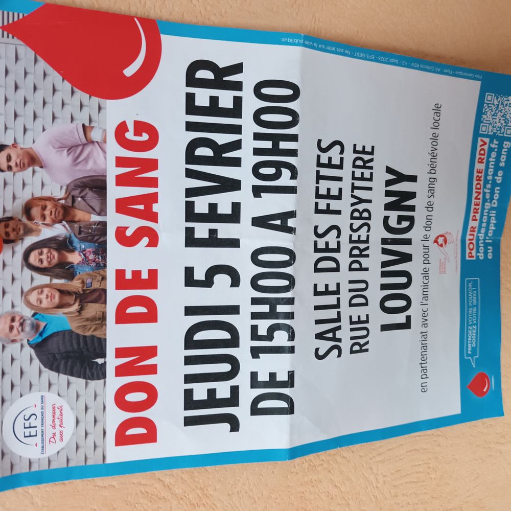 La commune de Louvigny en collaboration avec l'établissement français du sang et en partenariat avec l'amicale de don du sang bénévole locale organise une collecte de sang