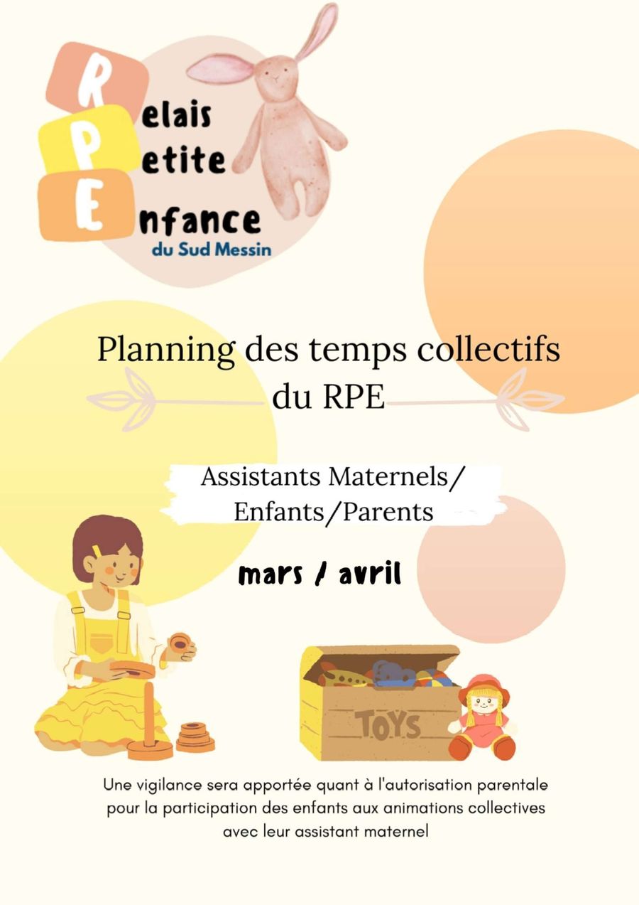 Le planning des temps collectifs du Relais Petite Enfance pour les mois de mars et avril est désormais disponible sur notre site !