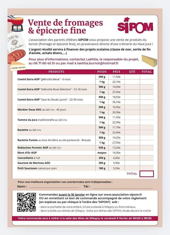 Dernier jour pour commander les délicieux fromages issus d’une crémerie du Jura. Cette vente est proposée par l’association des parents d’élèves jusqu’à samedi midi. Serez-vous plutôt team Mont D’or ou raclette ? Commandez en ligne sur https://www.helloasso.com/associations/association-des-parents-d-eleves-de-pommerieux-sillegny/boutiques/vente-de-fromages-et-epicerie-fine-1