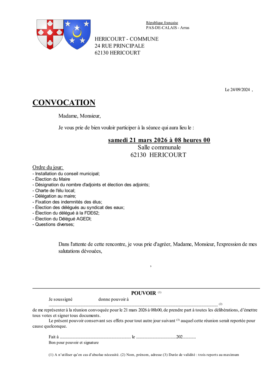 L'installation du conseil municipal aura lieu le samedi 21 mars 2026 à 8h00 à la salle communale