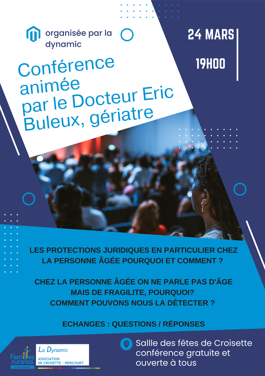 L'association locale Familles rurales La Dynamic vous propose une conférence du Dr BULEUX, gériatre.