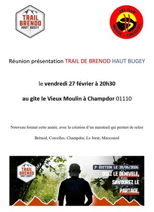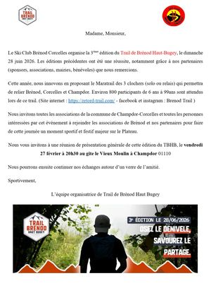Venez rejoindre l'équipe de bénévoles du ski club de Brénod Corcelles pour l'organisation du trail de Brénod qui passera à Corcelles et à Champdor !