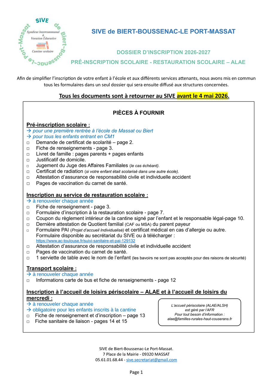 ⚠️ Merci de bien vouloir retourner votre dossier complété avant le 4 mai 2026.