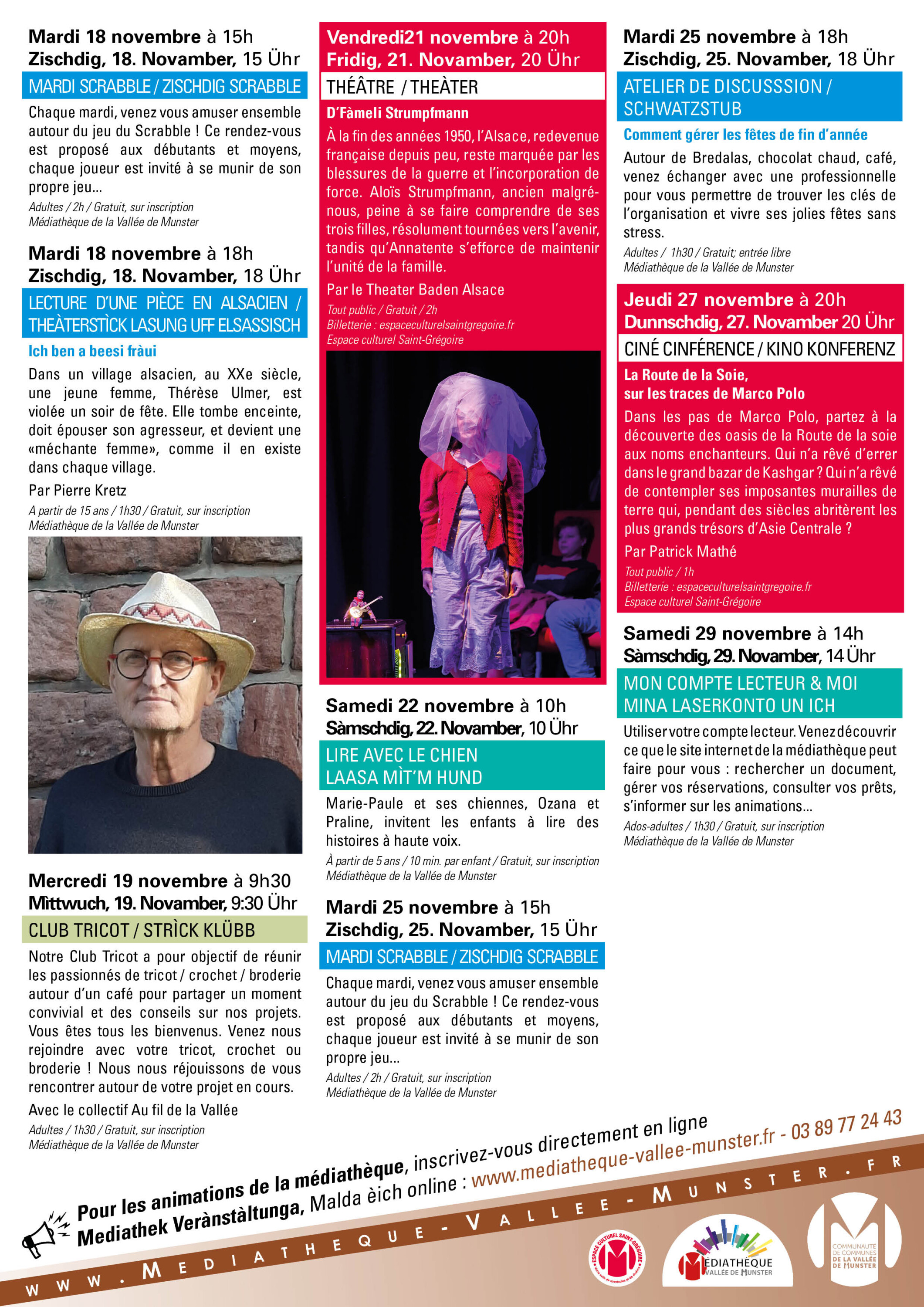Mar 18 nov. 18H15 à la Médiathèque de la Vallée de Munster