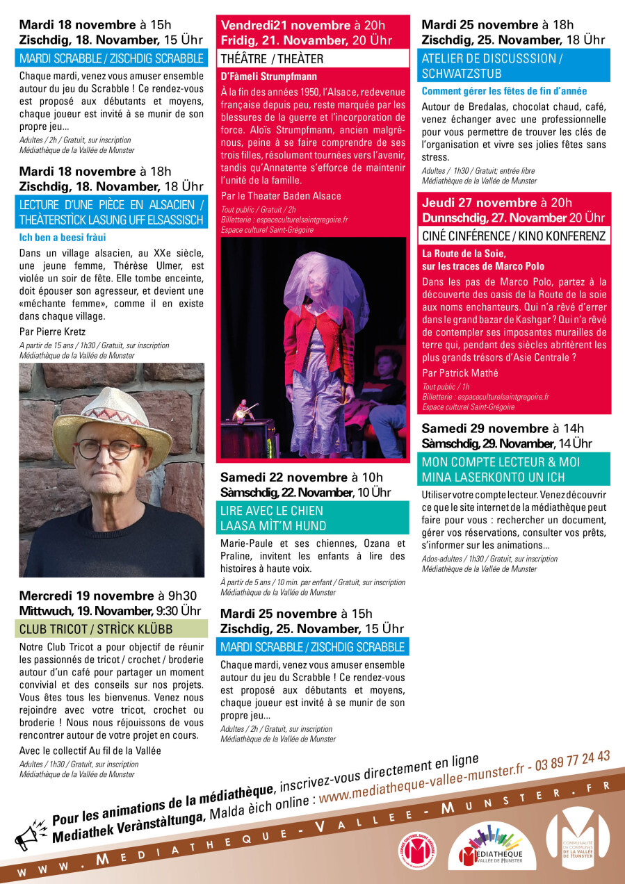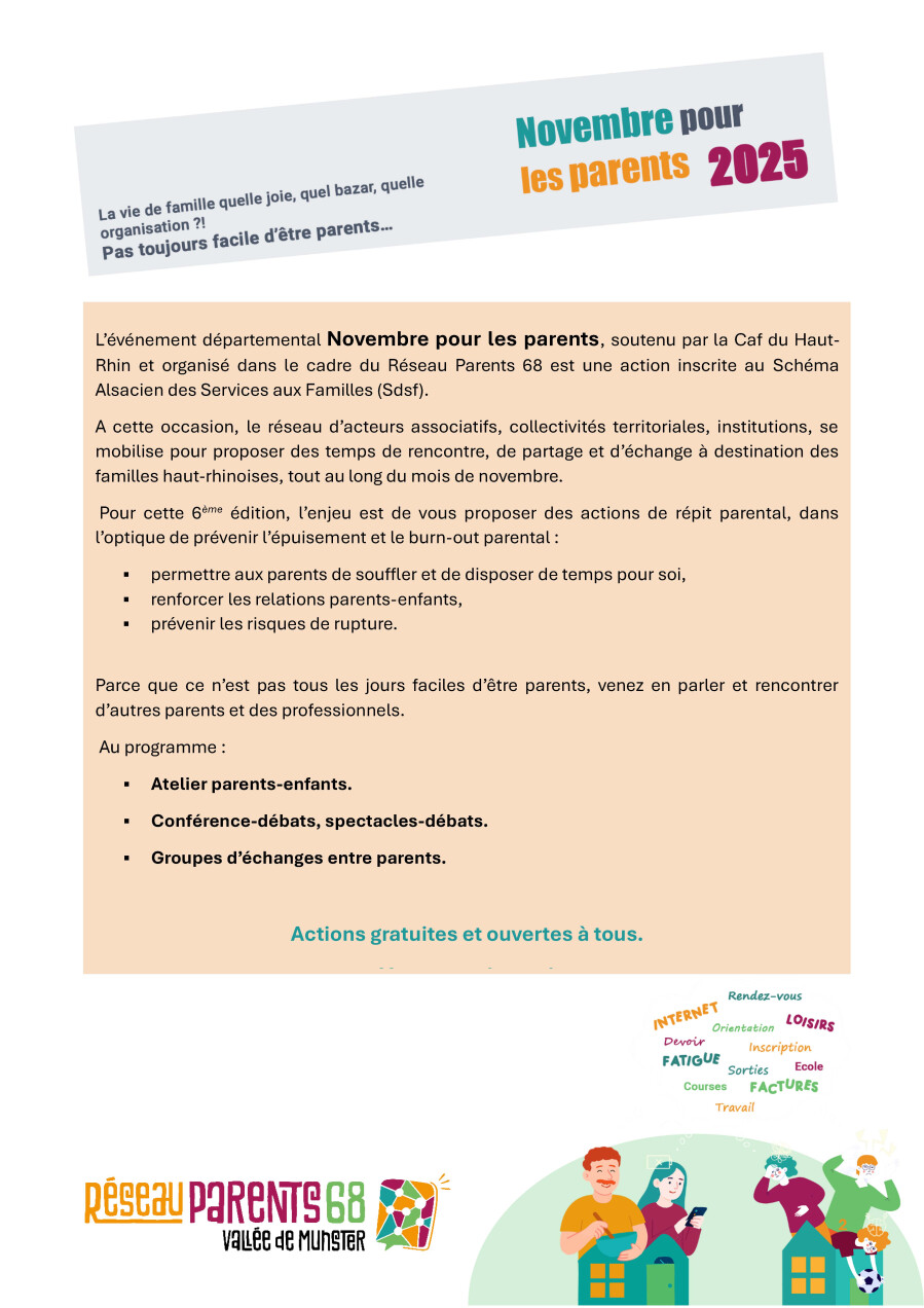Tout au long du mois de novembre, le Réseau Parents 68 vous propose :