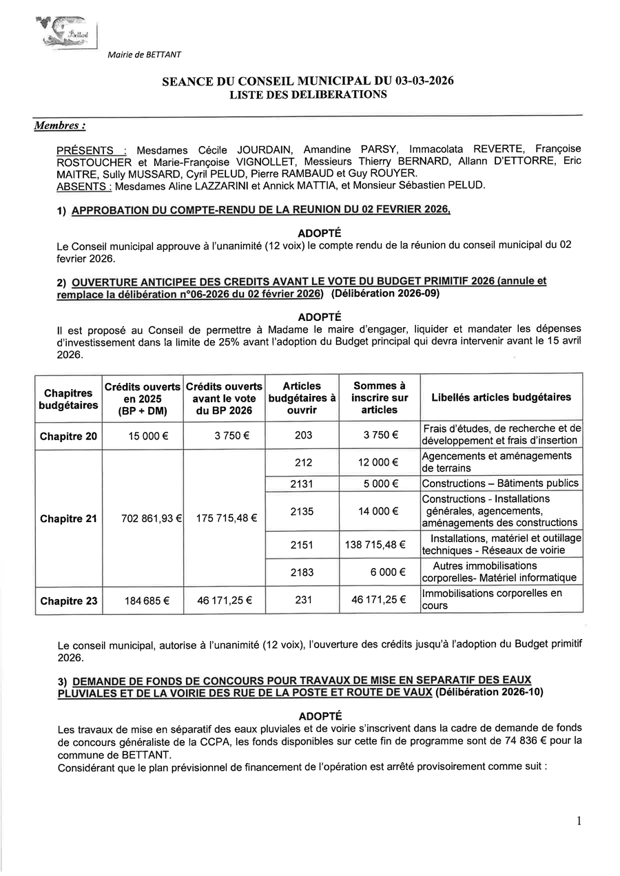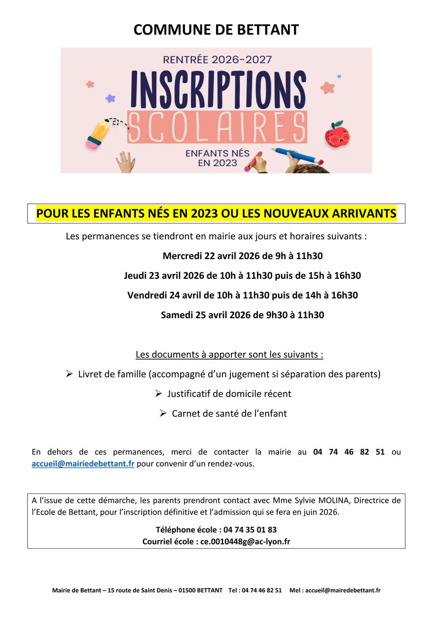 Horaires d'ouverture au public de la mairie de BETTANT.