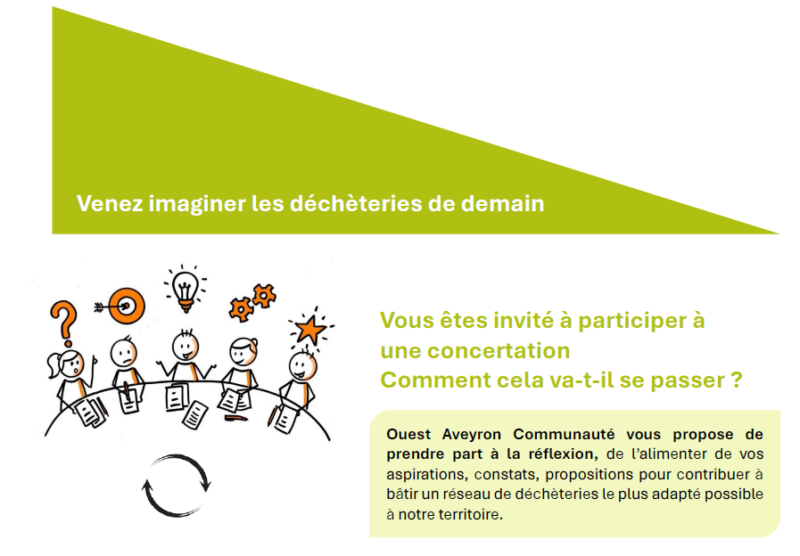 Une enquête grand public est aussi lancée pour enrichir les travaux du groupe. Elle permettra de recueillir le point de vue et les usages des habitants et des professionnels des 29 communes du territoire d’Ouest Aveyron Communauté pour imaginer un réseau durable de déchèteries de demain adapté aux besoins du territoire.