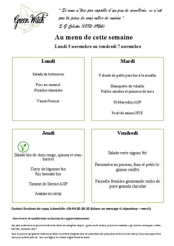 Les repas préparés par Green Witch à la Marmottière sont proposés à tous.