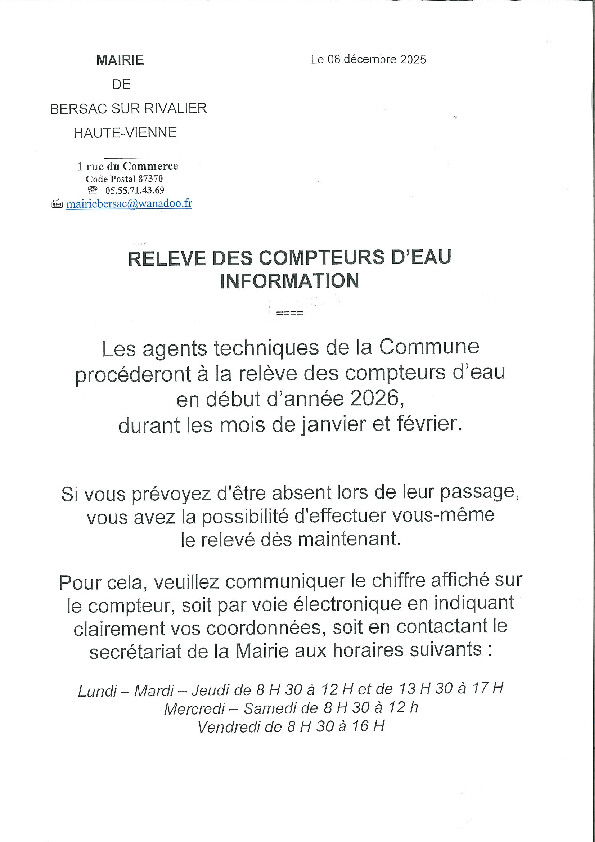 - Bersac-sur-Rivalier - Syndicat des Eaux Vienne-Briance-Gorre - 87370