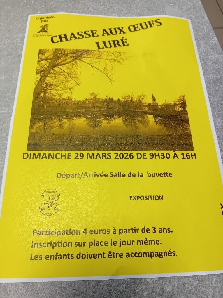 l'association APAI organise sa chasse aux oeufs à Luré dimanche 29 mars de 9h30 à 16h.