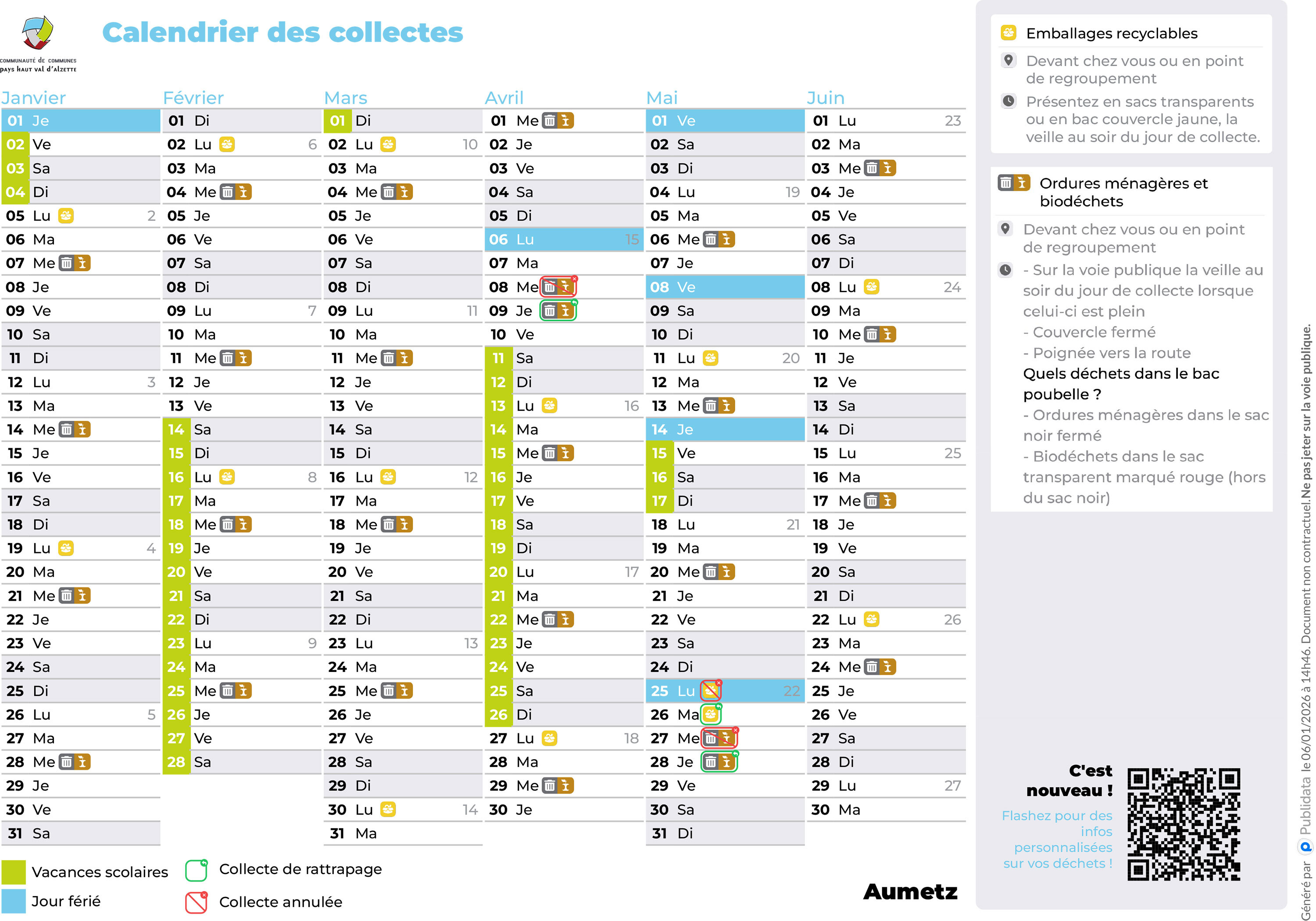 Sur le site internet de la CCPHVA : https://ccphva.com/calendrier-collecte-2026, en téléchargement (et imprimable si besoin)