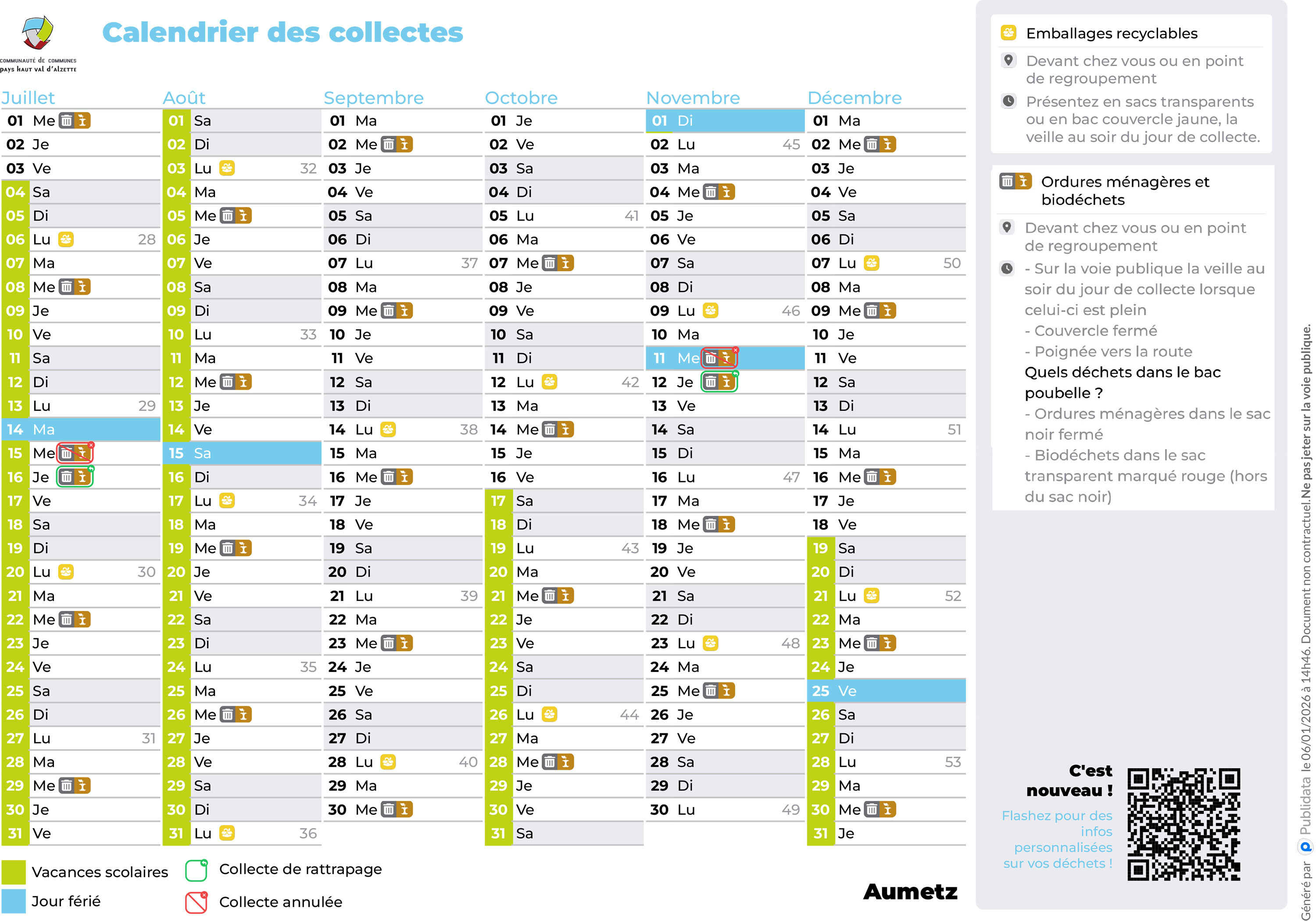 Pour rappel, à partir de cette année, la CCPHVA ne distribuera plus de calendrier de collecte en version papier. Cette décision vise à réduire le gaspillage de papier, maîtriser les coûts et limiter notre impact sur l’environnement.