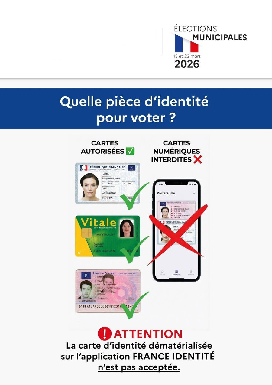 👉 Pensez également à vous munir de votre carte électorale (facultative mais recommandée pour faciliter le passage au bureau de vote).