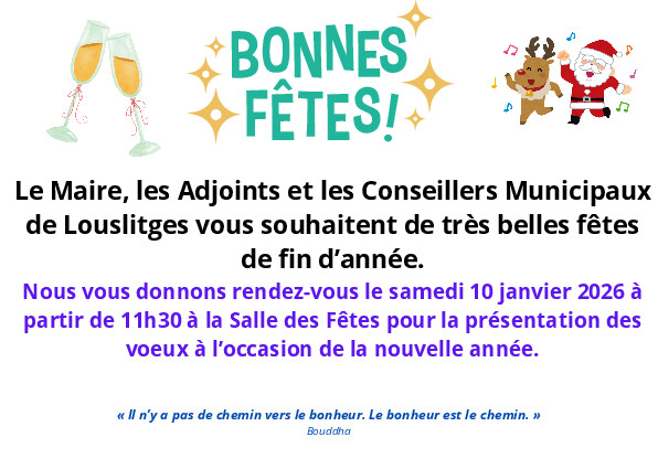 A l'occasion des Fêtes de fin d'année, la Mairie de Louslitges sera fermée au public les mardis 23 et 30 décembre 2025.