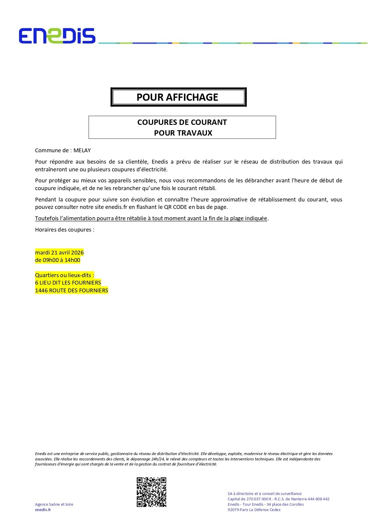À noter que la circulation sera réglementée à Melay durant les journées des portes ouvertes sur la route de la Croix Mallet aux abords de la ferme BROSSET (circulation à sens unique et déviation par la route de Changy et la route de La Bénisson Dieu) pour garantir la sécurité et permettre le stationnement des visiteurs. Merci de votre compréhension.