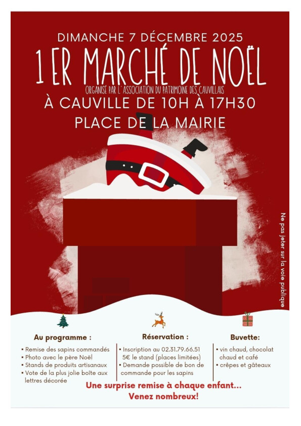 L'Association du Patrimoine des Cauvillais vous invite à son marché de Noël de produits artisanaux en compagnie du Père Noël🎄