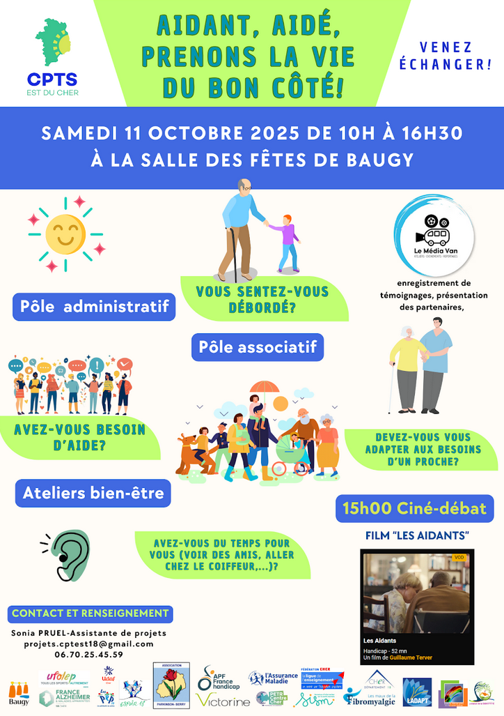 Dans le cadre de l'organisation d’un forum à destination des aidants, nous avons le plaisir de vous solliciter pour prendre part à cet événement qui se tiendra le samedi 11 octobre 2025, à la salle des fêtes de Baugy, à l’occasion de la Semaine d’Information sur la Santé Mentale (SISM).