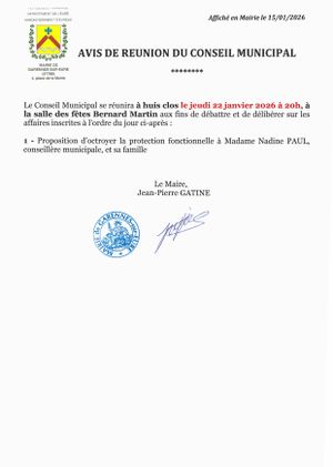 Le conseil municipal se réunira le jeudi 22 janvier 2026 à 20h à la salle des fêtes.