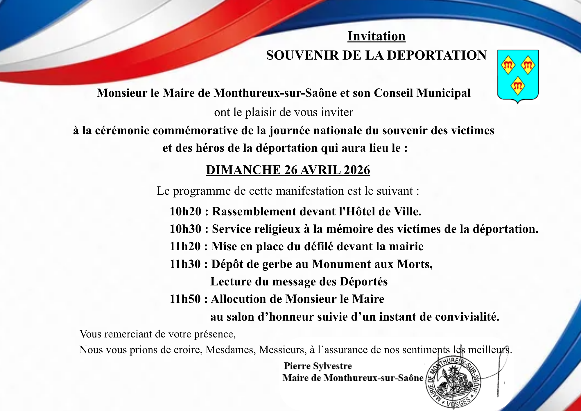 📅 le mardi 7 avril 2026, et non le lundi car c’est le jour des Pâques, à⏰15h00, 📍 salle 1 de la mairie de Monthureux-sur-Saône.