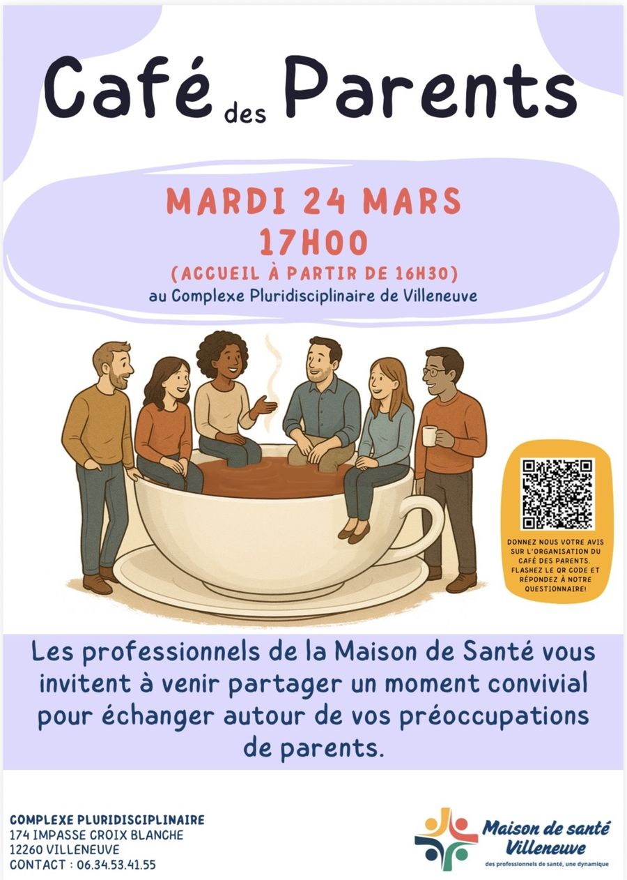 Les professionnels de santé de Villeneuve ont le plaisir de vous inviter au prochain Café des Parents, qui se tiendra :