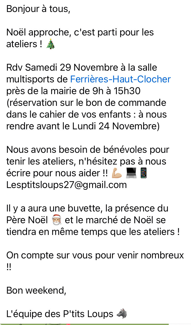 HORAIRES POUR LES PARENTS INSCRITS AU REPAS DE NOËL :