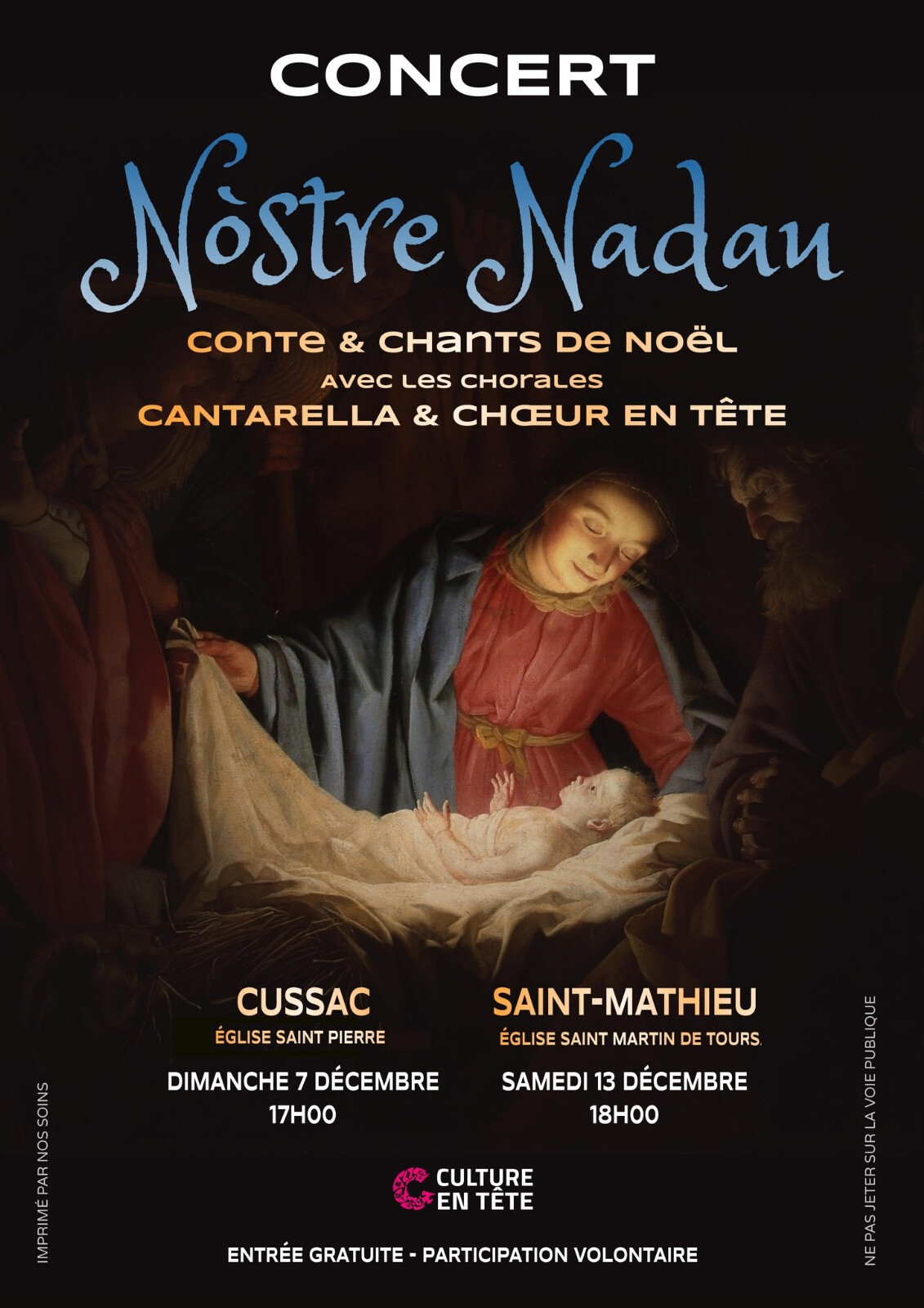 Les lieux et horaires sont affichés sur le 2ème volet de l'affiche