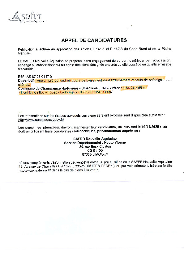 4 place de la Mairie 87150 Champagnac-la-Rivière