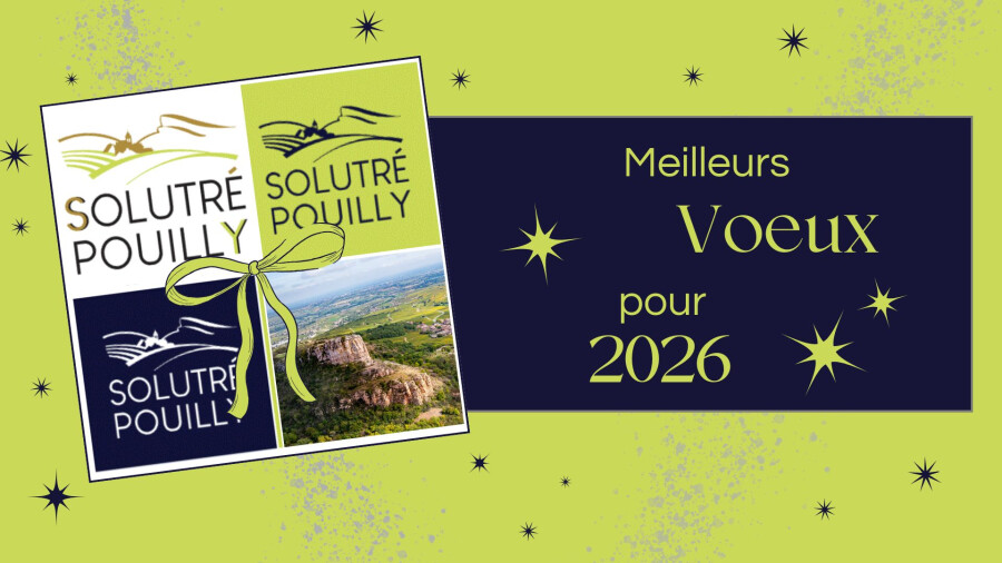 Monsieur le Maire et son Conseil vous invitent Ă participer Ă la CĂ©rĂ©monie des Voeux du Maire qui aura lieu le Dimanche 11 Janvier 2026 Ă 11H00 Ă la Salle des fĂȘtes de SOLUTRE-POUILLY.