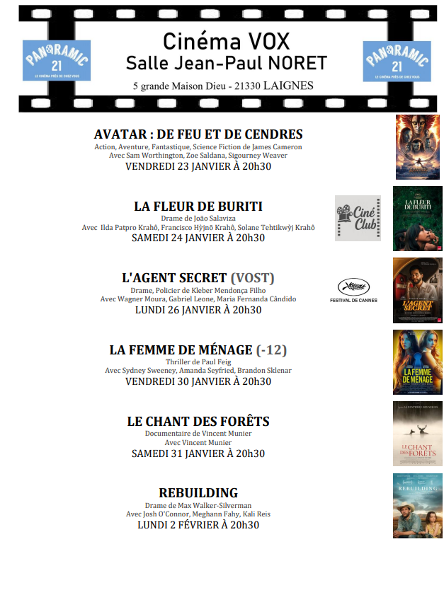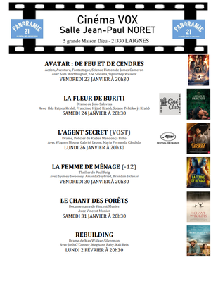 Voici le programme de la quinzaine au Cinéma Vox