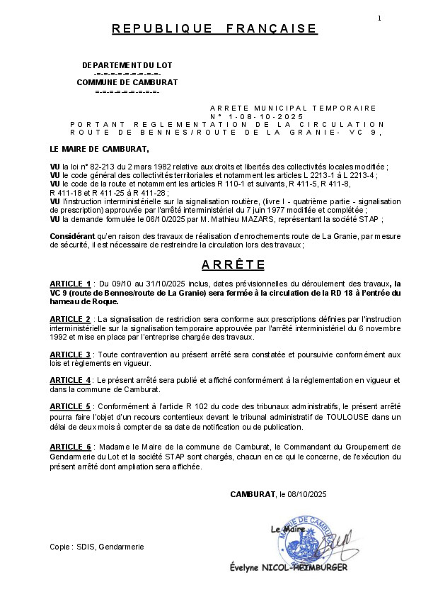 la route de Bennes / La Granie (VC9) sera fermée à la circulation