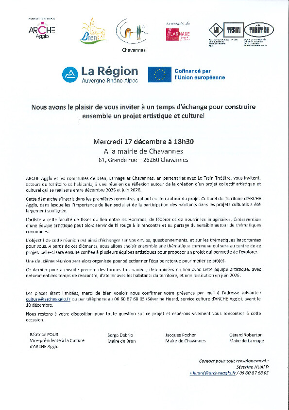 Les communes de Bren, Chavannes et Larnage participent à un projet culturel proposé par Arche Agglo.