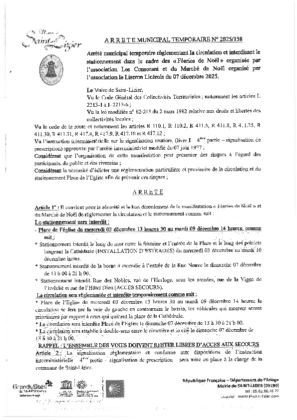 - Stationnement et circulation seront interdits place de l'Eglise le dimanche 7 décembre entre 13 h 30 et 21 h 00