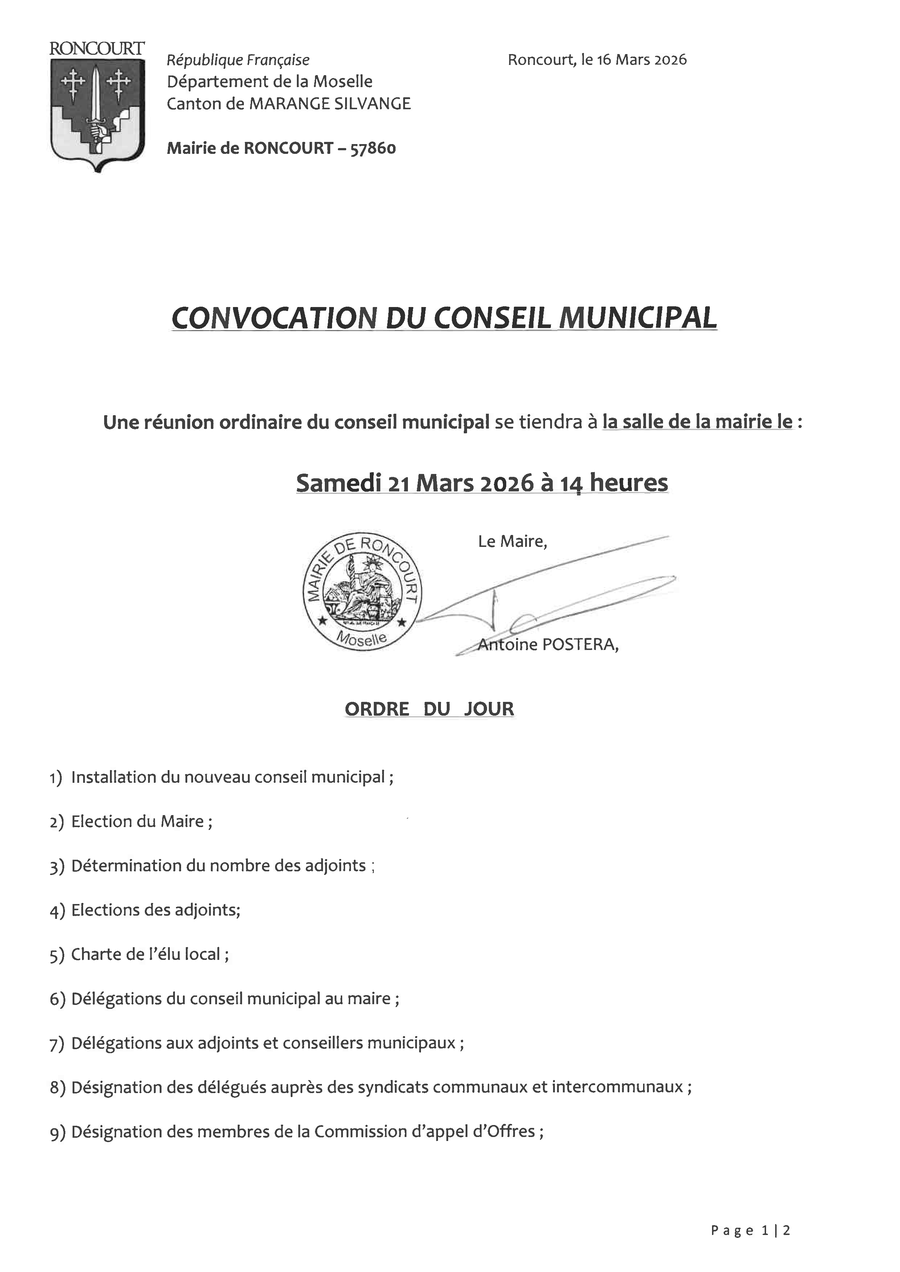 - le certificat d’inscription délivré par la mairie, attestant que les parents et l’enfant résident bien à Roncourt