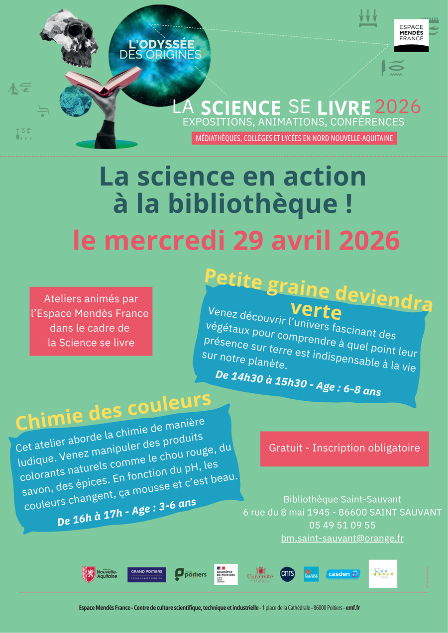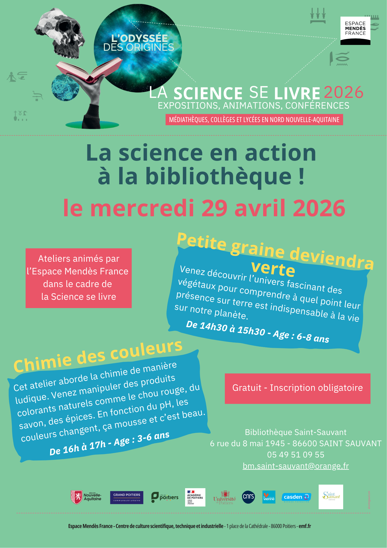 Suivez les actualités de la bibliothèque de Saint-Sauvant sur sa nouvelle page Facebook via ce lien : https://www.facebook.com/profile.php?id=61580160592283