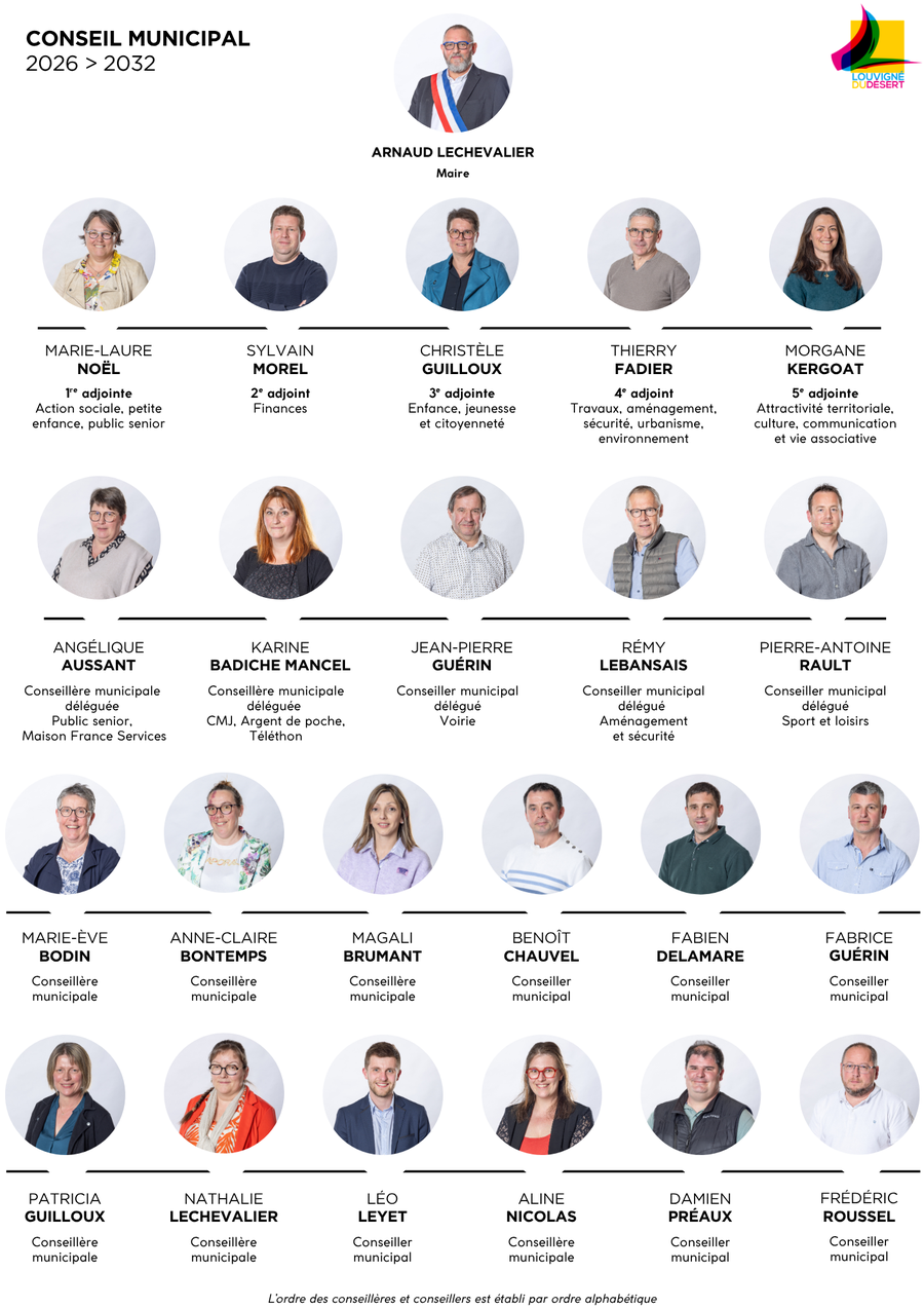 👉 Découvrez la composition complète du conseil municipal sur le site de la ville : https://www.louvignedudesert.org/mairie/le-conseil-municipal/conseil-municipal/